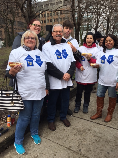 L500 attended a rally to support OPSEU workers at L 571 UHN , where these particular pharmacy technologists are the lowest paid workers in the entire health care sector!